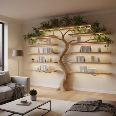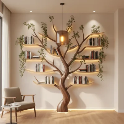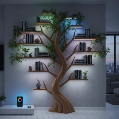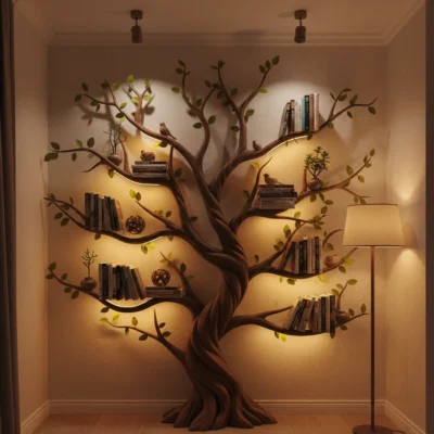 A tree-shaped bookshelf is already a statement piece but with the right lighting, it transforms into something truly special. Thoughtful illumination not only highlights the unique structure and details of the shelf but also enhances the atmosphere of the entire room. From subtle LED strips tucked along branches to smart lights that adapt to your mood or schedule, there are endless options to suit different styles, needs, and spaces.